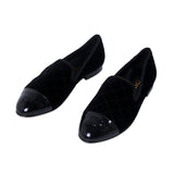 Details: Black Quilted Velvet / Patent Leather Pointed Toe / CC Logo at Vamps / Covered Heels