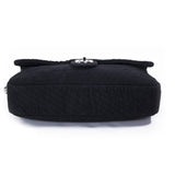 Details: Black Quilted Fabric / Silver-Tone Hardware / Chain-Link and Leather Shoulder Strap / Stitches and Camelia Flowers Throughout the Exterior / Black Canvas Interior Lining / Zipper and Small Flat Pocket at Inside / Turn-Lock Closure at Front Flap