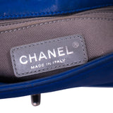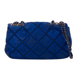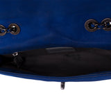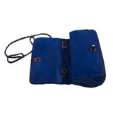 Details: Blue Leather / Black Stitching Contrast / Antique Hardware / Long-Chain Shoulder Strap / Grey Fabric Interior Lining / Zipper Pocket at Inside / Flap Closure at Top