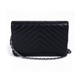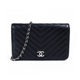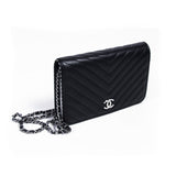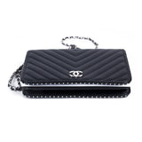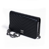 Description: Authentic Pre-Owned Chanel Studded Chevron Wallet on Chain