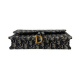 Description: Authentic New Christian Dior Saddle Wallet on Chain in Blue Dior Oblique Jacquard