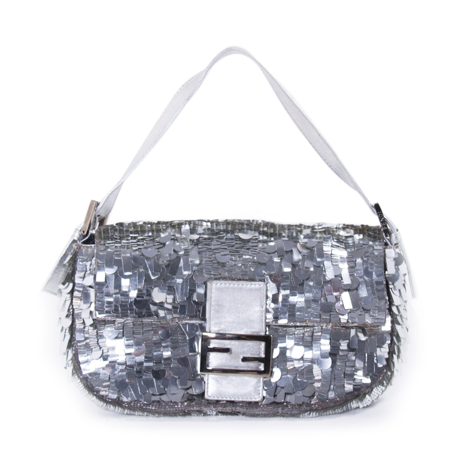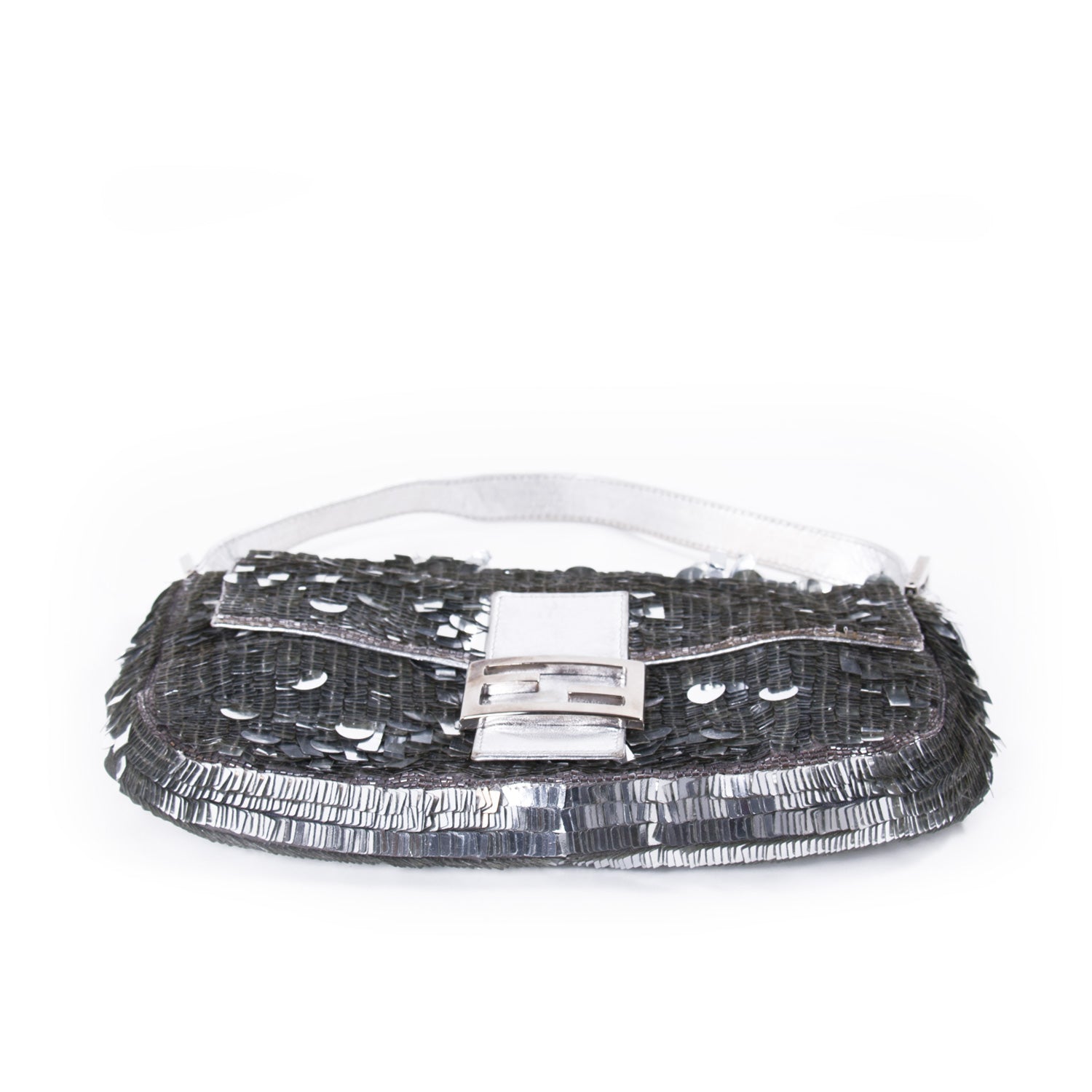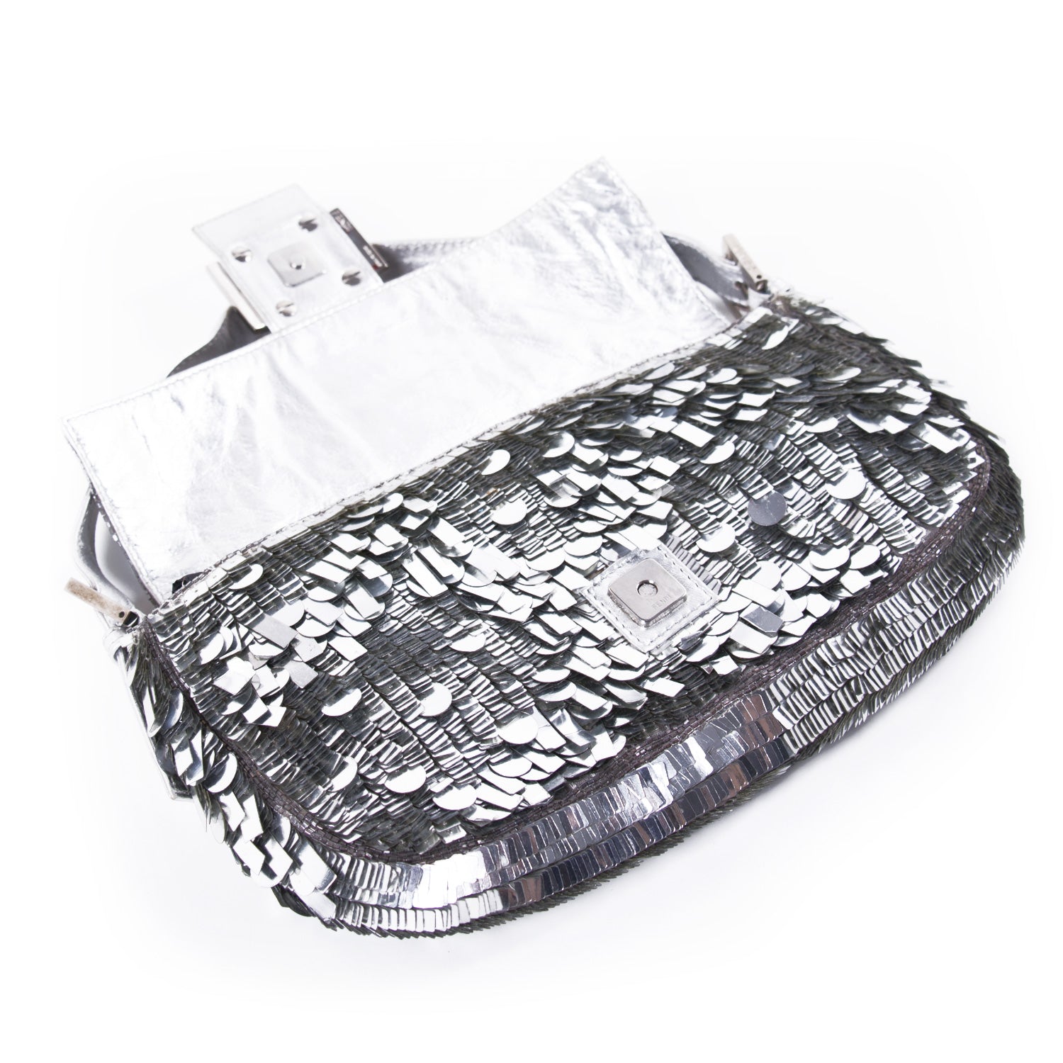 Description: Authentic Pre-Owned Fendi Silver Sequin Baguette