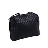 Details: Black Intrecciato Leather / Black Metal Hardware / Long Adjustable Shoulder Strap / Brown Suede Lining / Zipper and Flat Pocket at Interior / Dual-Way Zipper Closure at Top