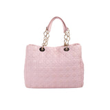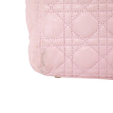 Details: Pink Quilted Cannage Leather / Gold-Tone Hardware / Dual Rolled Chain-Link Leather Handles / Logo at Front / Protective Feet at Base / Fabric Interior / Three Compartments, One with Zipper Closure / Two Flat Pockets and One Zipper Pocket