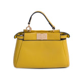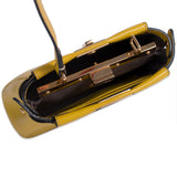 Details: Yellow Nappa Leather / Gold-Tone Hardware / Detachable Adjustable Shoulder Strap / Single Rolled Top Handle / Dual Compartments / Grey Microfiber Lining / Two Card Slots / Turn Lock Closure and Snap Closure