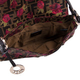 Details: Brown Fabric with Floral Prints Throughout / Gold-Tone Hardware / Single Rolled Handle / Brown Leather Trim / Brown Fabric Interior / Flat Pocket at Inside / Magnetic Snap Closure at Front