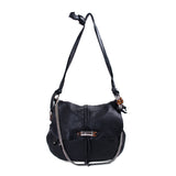 Details: Black Grained Leather / Silver-Tone Hardware / Adjustable Leather Shoulder Strap / Detachable Chain Shoulder Strap / Black Fabric Interior Lining / Two Phone Pocket and One Zip Pocket / Flap Closure