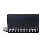 Details: Black Soft Leather / Silver-Tone Hardware / Long Chain Detachable Shoulder Strap / Interior Leather Lining / One Compartment / Zipper Pocket and 18 Card Slots / Push Button Closure at Front Flap