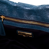 Details: Blue Glazed Leather / Gold-Tone Hardware / Dual Rolled Handles / Detachable Shoulder Strap / Purple Satin Interior Lining / Zipper Pocket at Inside / S-Lock Closure at Front Flap / Logo at Back
