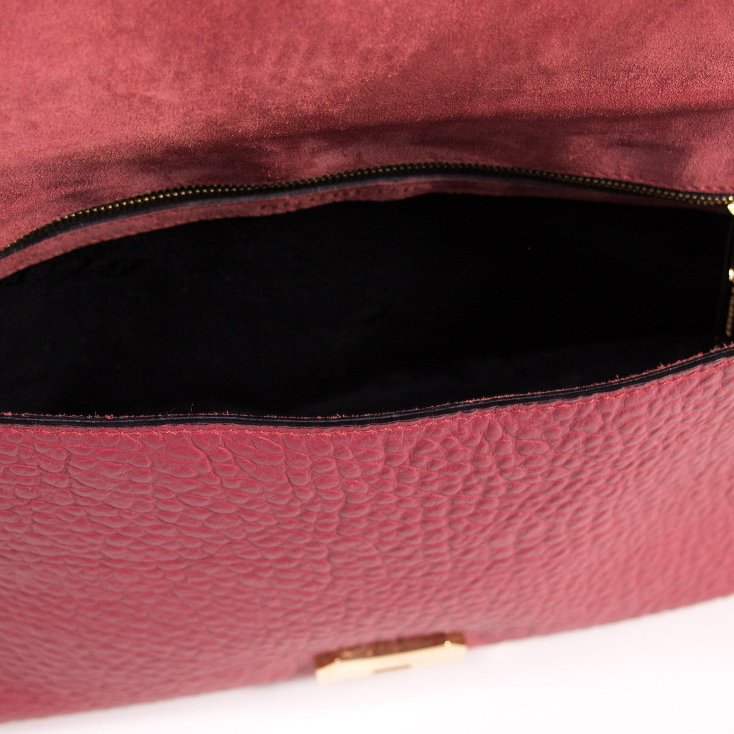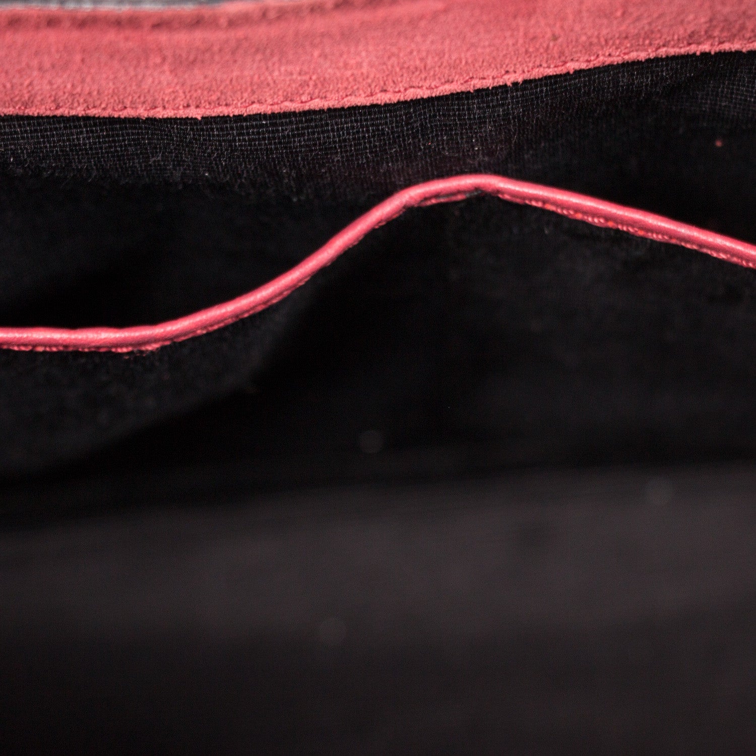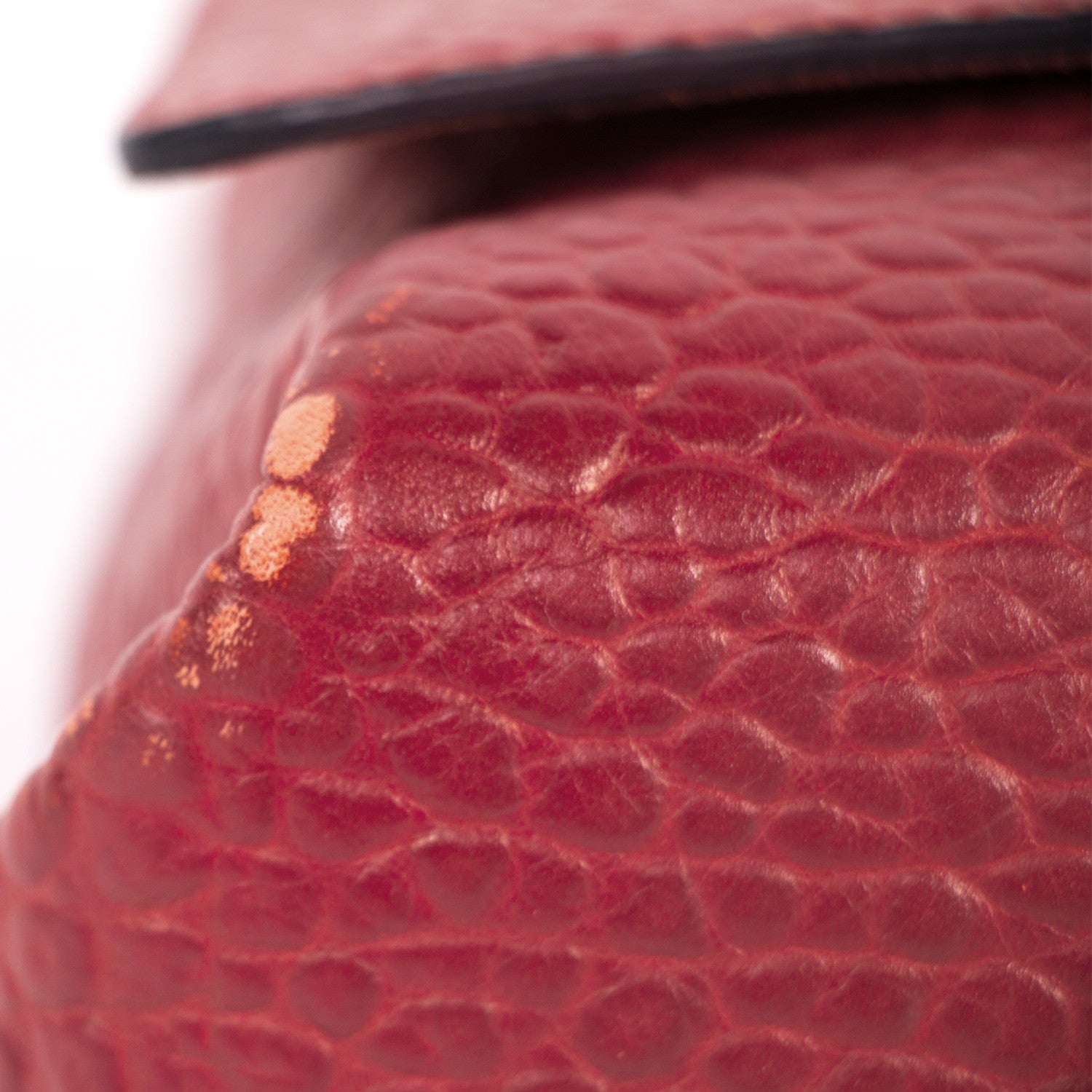 Details: Permanganate Red Grained Calf Leather / Gold Tone Hardware / Single Chain Link And Leather Shoulder Strap / Red Suede At Interior Flap / Black Woven At Interior / Single Compartment / Single Zip Pocket And Dual Flat Pockets At Interior / Fold-Over Front With Clip Lock Closure