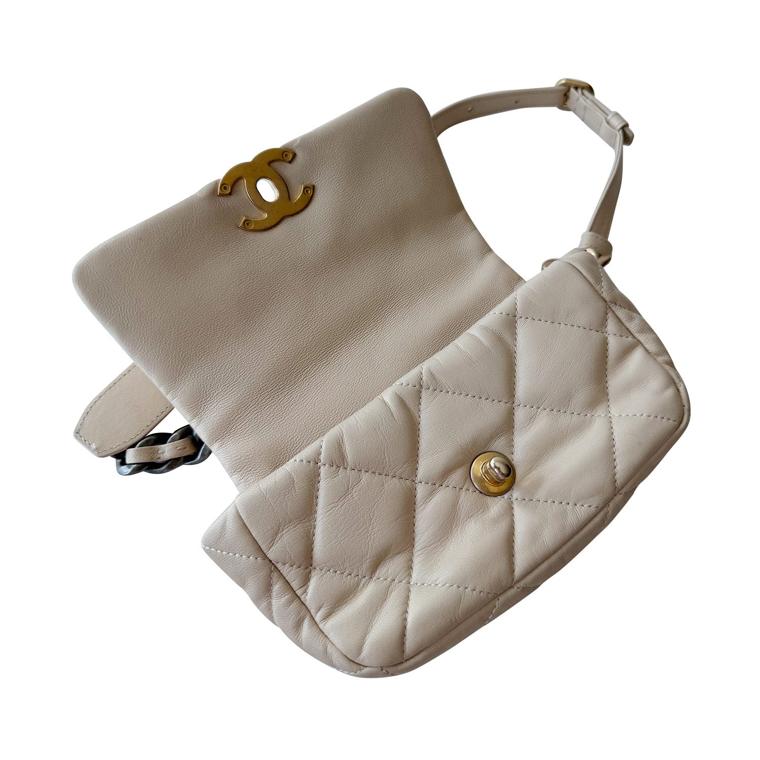 Description: Authentic Pre-Owned Chanel 19 Leather Waist Bag