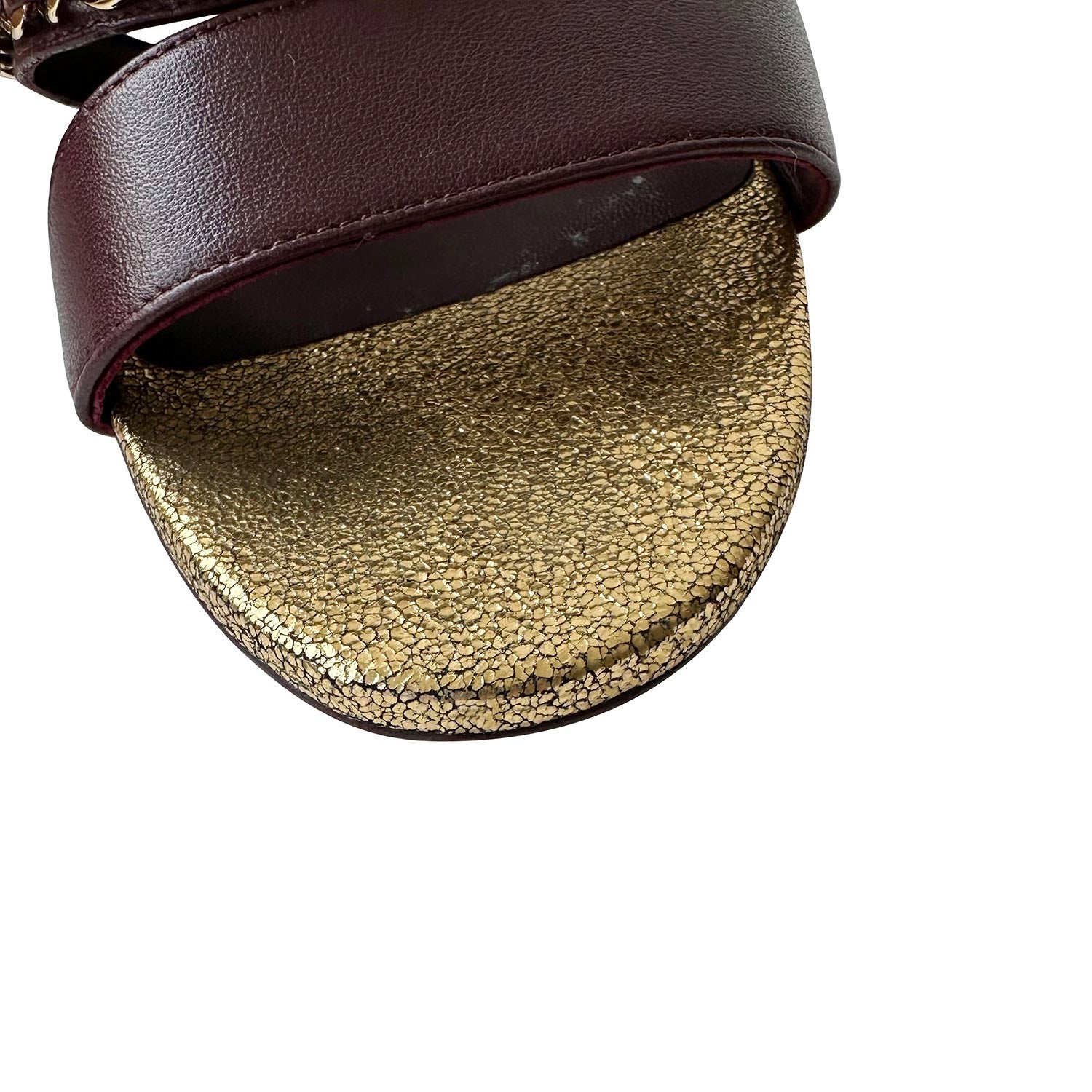 Details: Burgundy Leather / Chanel Logo at Side / Golden Sole and Toe / Interlocking Chain Around