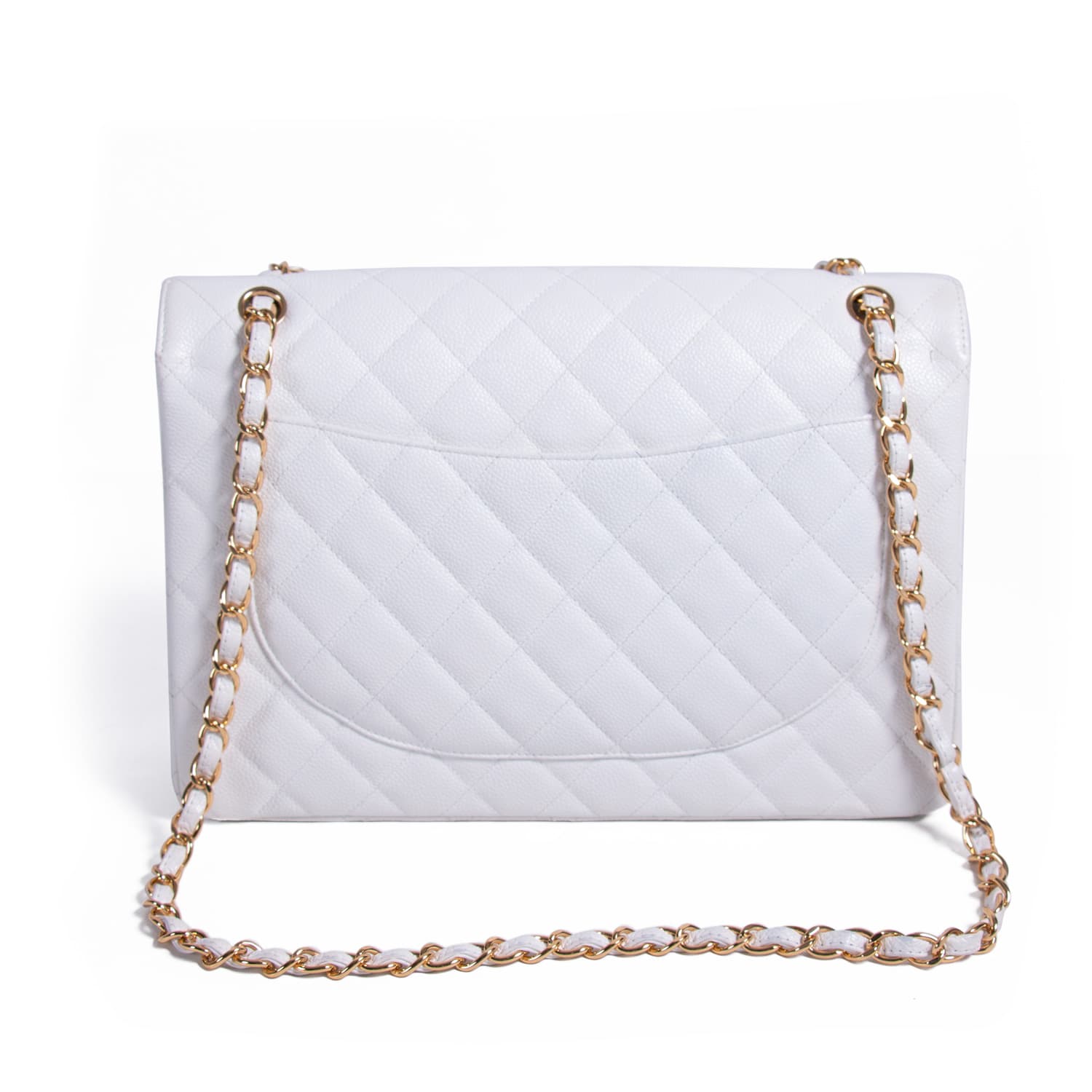 Details: White Caviar Leather / Gold-Tone Hardware / Dual Chain-Link Leather Shoulder Strap / White Leather at Interior / Large and Small Compartment / Dual Flat and Zip Pocket at Inside / Turn Lock Closure at Front
