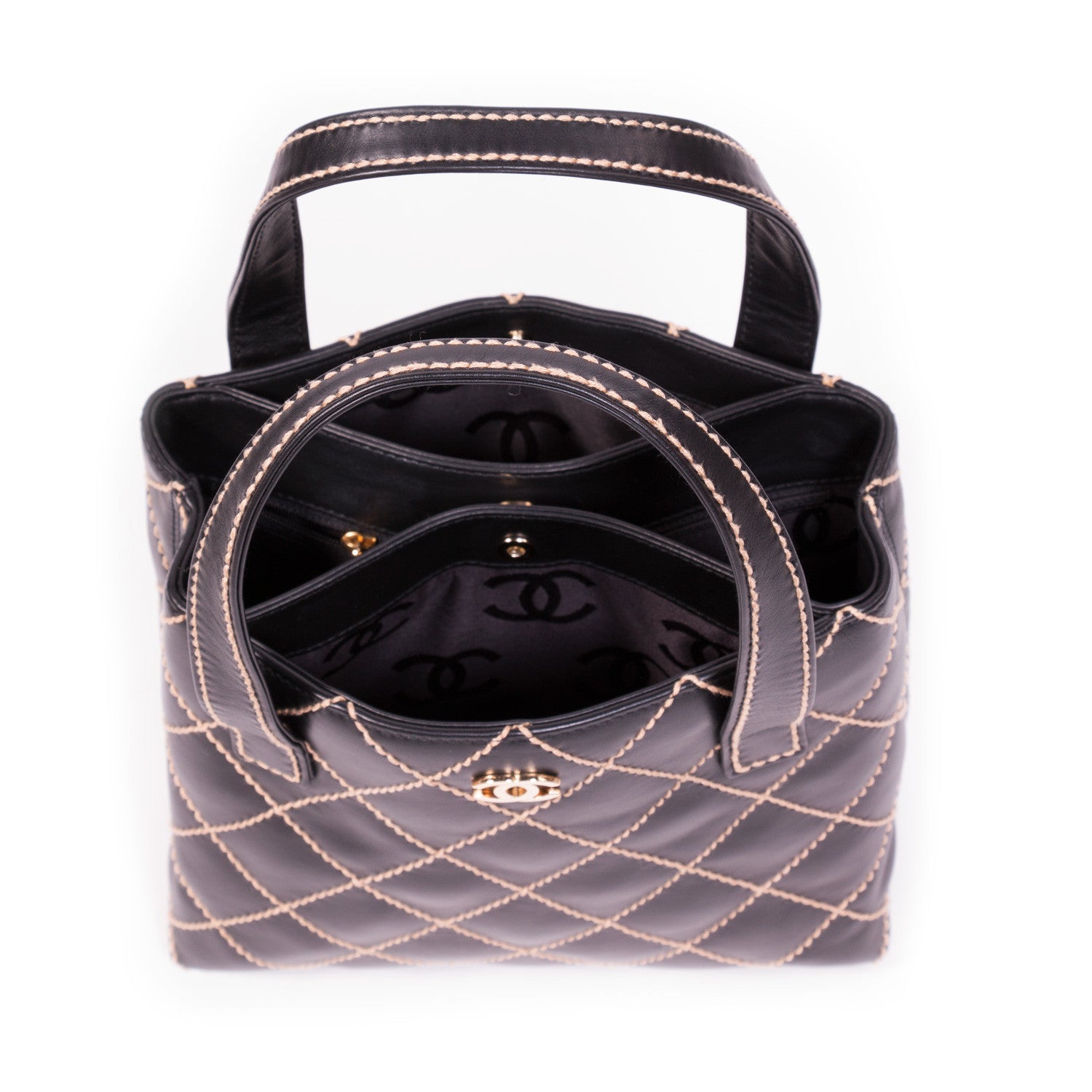 Description: Authentic Chanel Quilted Leather Surpique Handbag