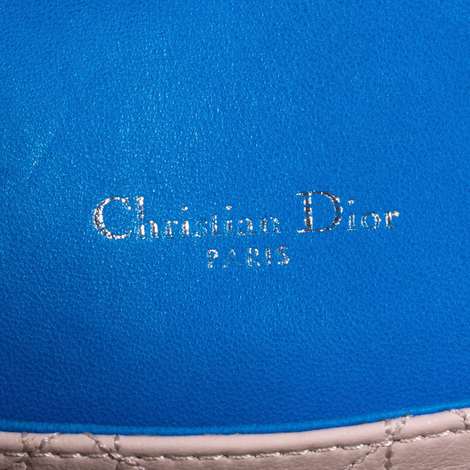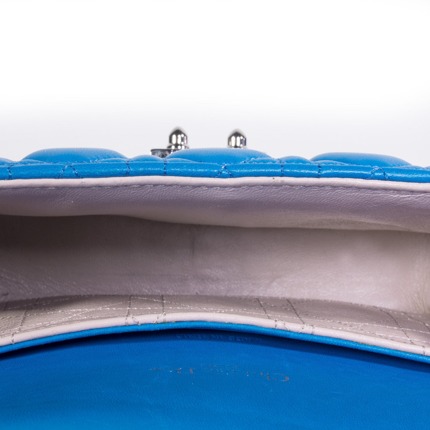 Details: Blue Quilted Lambskin Leather / Cannage Pattern / Silver-Tone Hardware / Chain Shoulder Strap / Pink Leather Interior / Single Compartment / Slit Pocket at Interior / Pocket at Exterior / S-Lock Closure at Front Flap