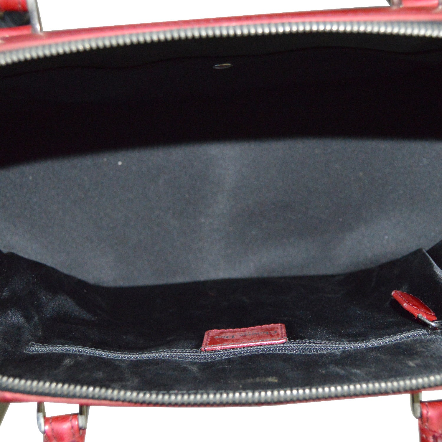 Details: Black Perforated Leather And Red Patent Leather / Silver-Tone Hardware / Tonal Stitching Throughout / Signature License Plate Detail / Automobile Hood Ornament-Inspired Key Chain / Dual Rolled Handles / Black Interior / Double Pockets At Interior Walls: Snap Closure And Zip-Around Closure