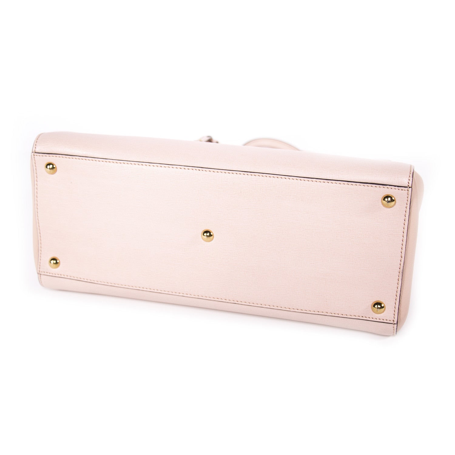 Details: Light Pink Leather / Gold-Tone Hardware / Dual Rolled Handles / Single Shoulder Strap / Protective Studs At Base / Tonal Canvas Lining / Three Compartments One With Zip Closure / Dual Pockets At Interior Walls / Snap Lock Closure At Top / Logo Tag At Front Exterior
