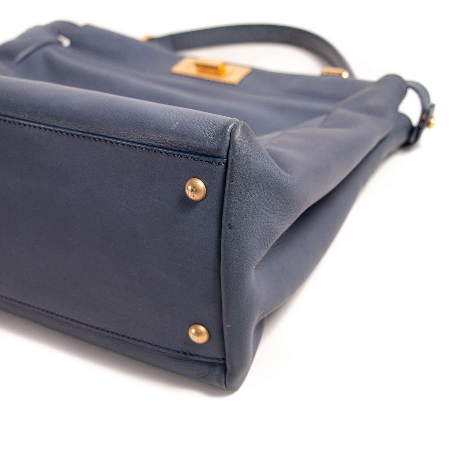 Details: Blue Soft Leather / Gold-Tone Hardware / Single Rolled Handle / Detachable Shoulder Strap / Protective Feet at Base / Blue Suede Lining / Multicolor Beaded Embellishment on the Inside / Dual Compartments / Zipper Pocket at Inside / Dual Turn-Lock Closure at Front and Back