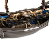 Details: Brown Calfskin Leather / Beige and Brown Python Leather / Silver-Tone Hardware / Single Rolled Handle / Detachable Blue Leather and Python Shoulder Strap / Suede and Python Interior Lining / Two Compartment with Zipper Pocket at Inside / Dual Turn-Lock Closures at Top