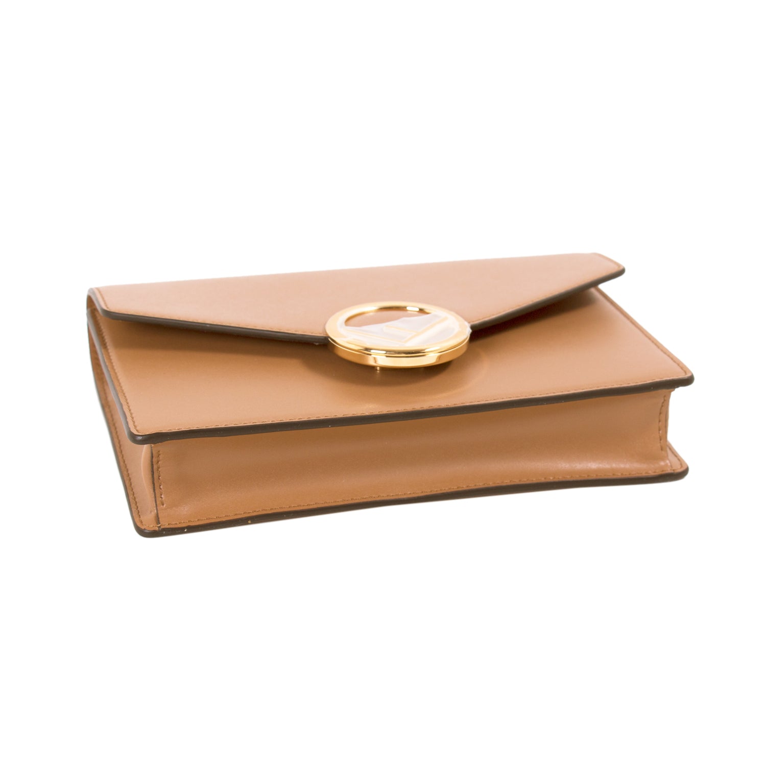 Details: Mocha Hue (Brown) Calf Leather / Gold-Tone Hardware / Detachable Chain-Link Shoulder Strap / F Logo at Front / Interior Leather Lining / Zipper and Bill Compartment at Inside / Ten-Card Slots / Magnetic Snap Closure at Flap