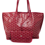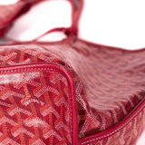 Details: Red Goyardine Coated Canvas / Silver-Tone Hardware / Dual Rolled Handles / White Leather Interior / Open Top / Attached Pouch