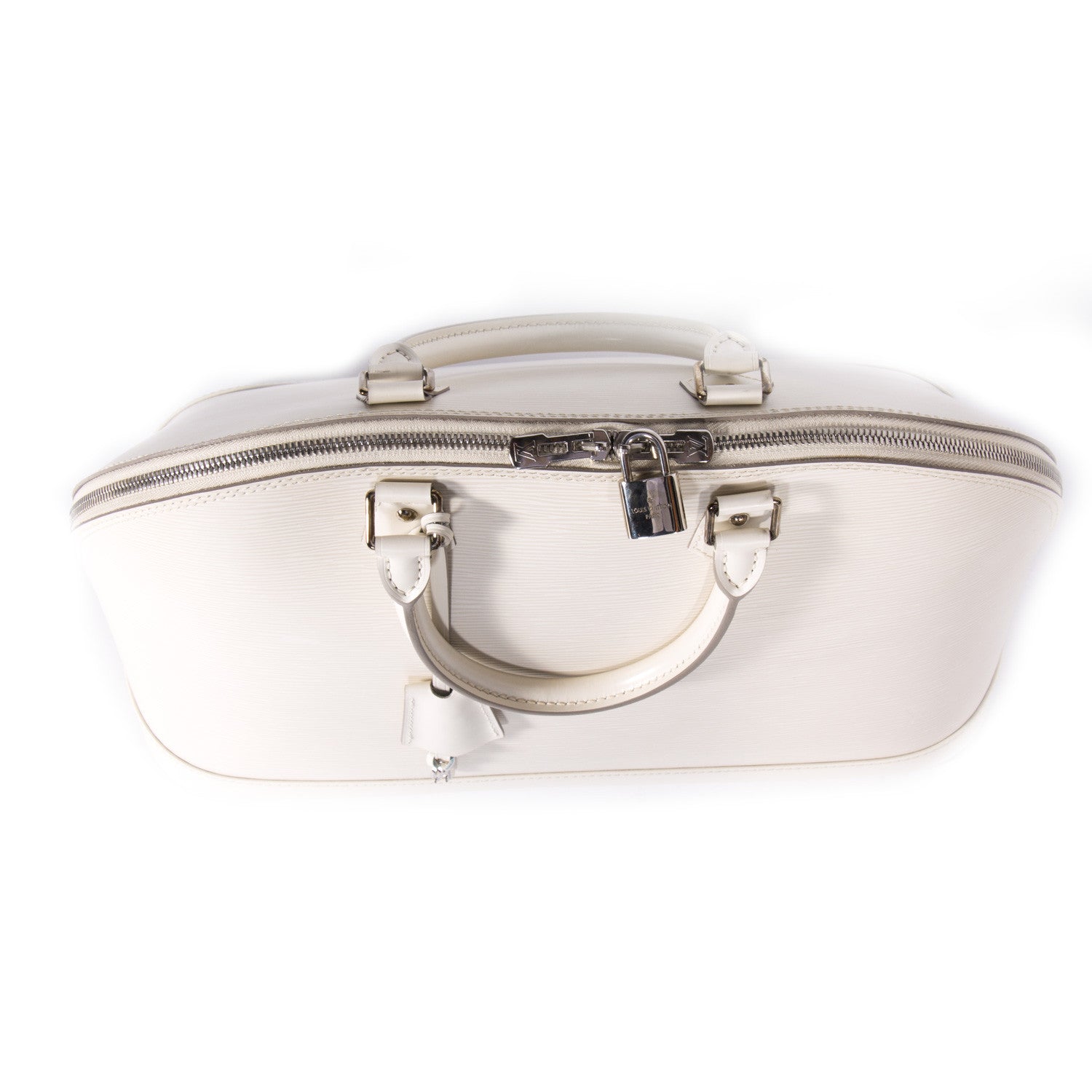 Description: Authentic White Louis Vuitton Alma GM Handbag