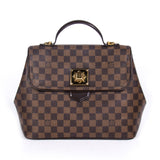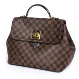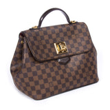 Details: Brown And Tan Damier Ebene Coated Canvas / Brass Hardware / Vachetta Brown leather Trim / Removable Shoulder Strap / Flat Top Handle / Red Alcantara Interior Lining / Dual Slit Pockets At Interior Wall / Gold Front Twist Turn-Lock Closure At Front Flap