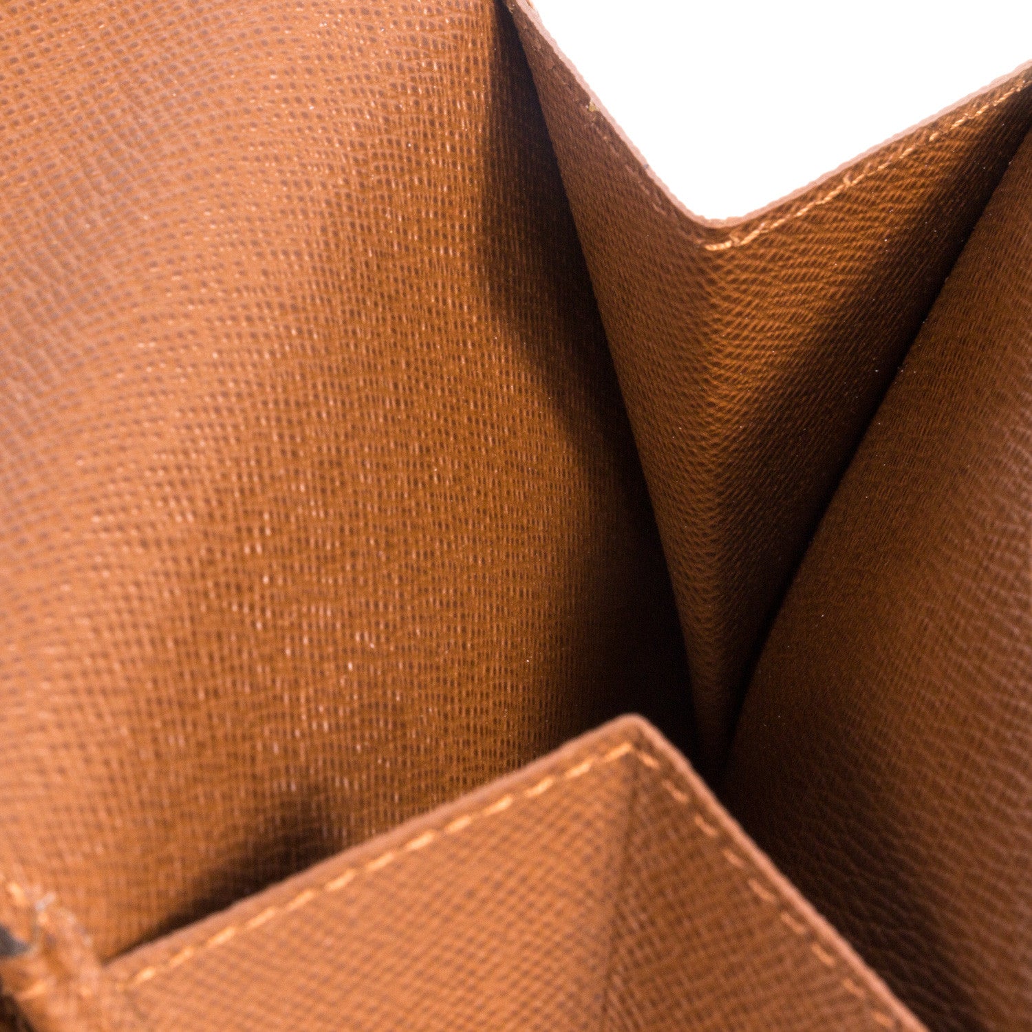 Details: Brown And Tan Monogram Coated Canvas / Brass Hardware / Snap Coin Pocket At Exterior / Brown Taiga Leather Lining / Single Interior Bill Compartment / Six Card Slots At Interior Walls / Snap Closure At Flap