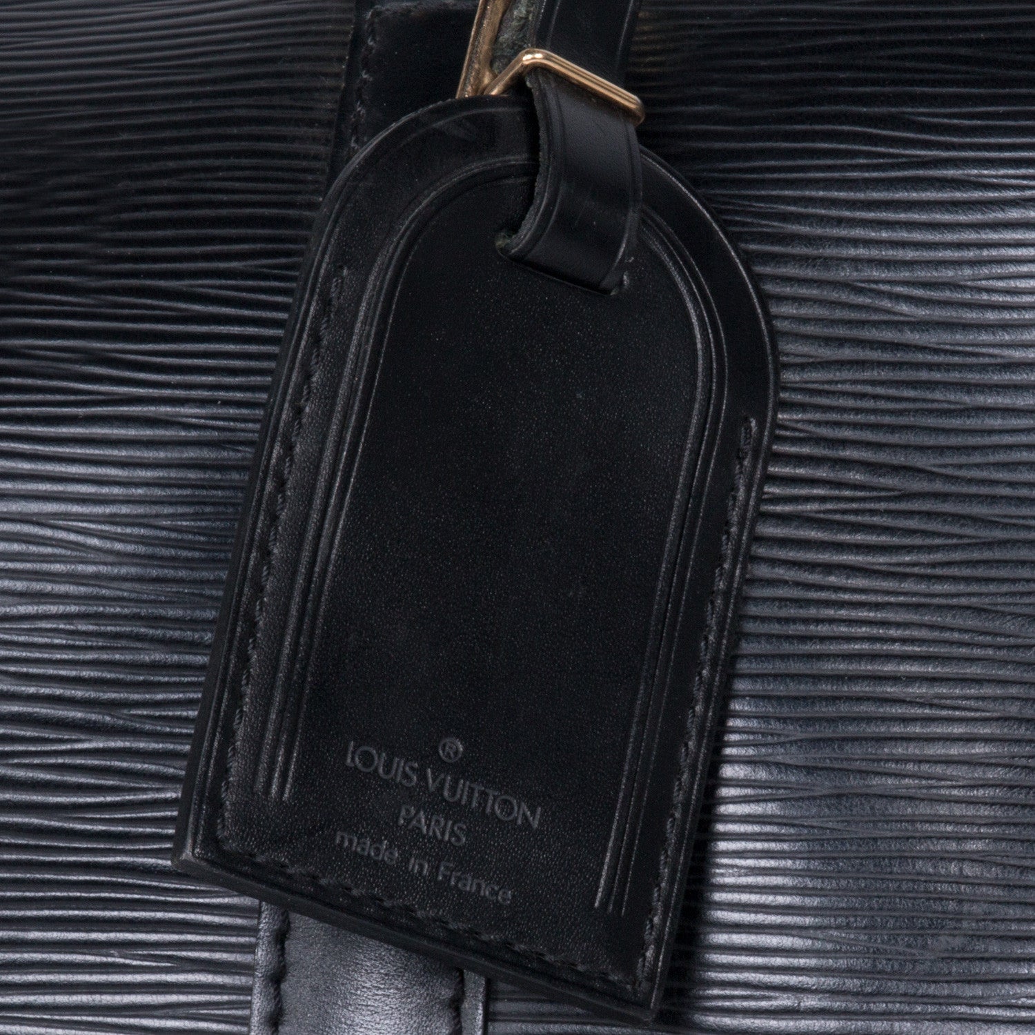 Details: Men's Black Epi Leather / Brass Hardware / Dual Rolled Top Handles / Embossed LV Logo at Front / Single Patch Pocket at Side / Suede Interior Lining / Zip Closure at Top