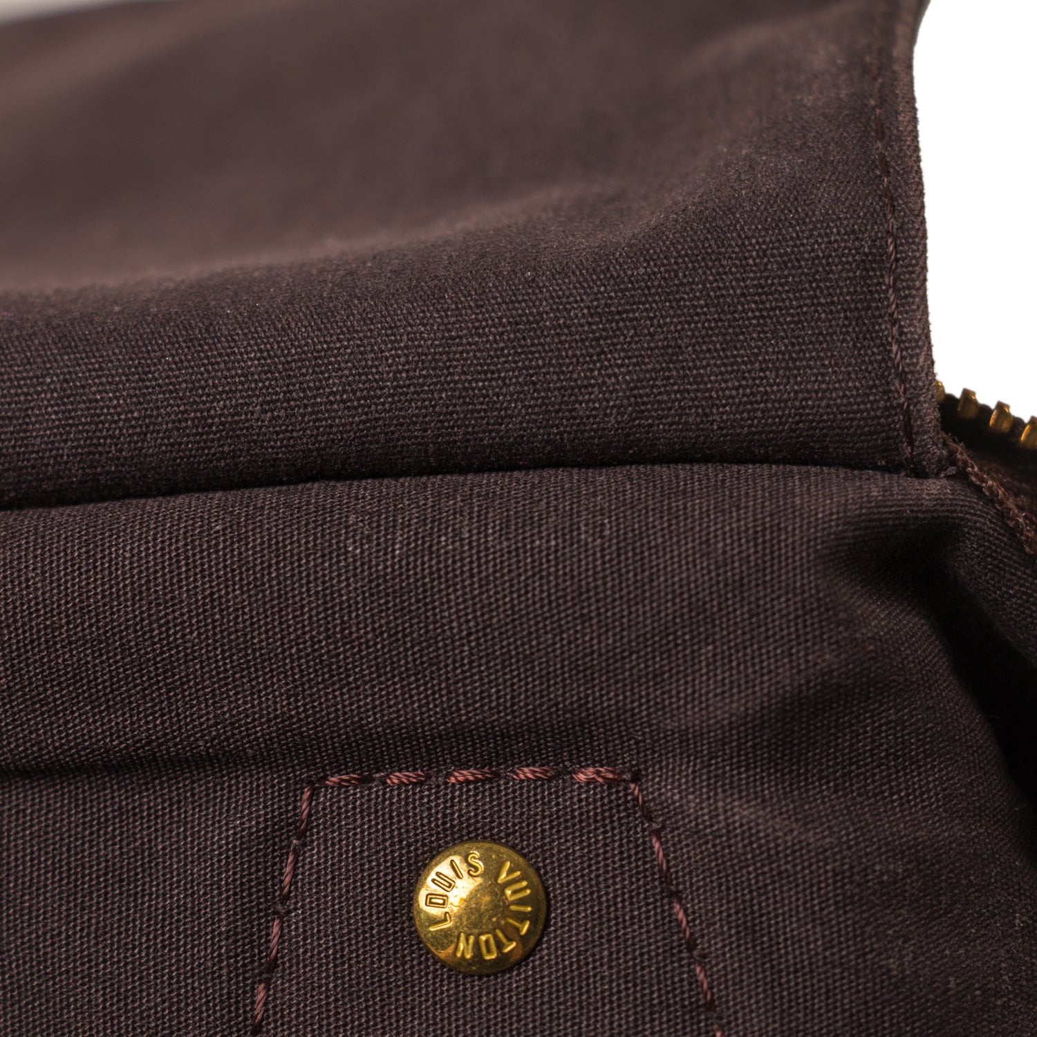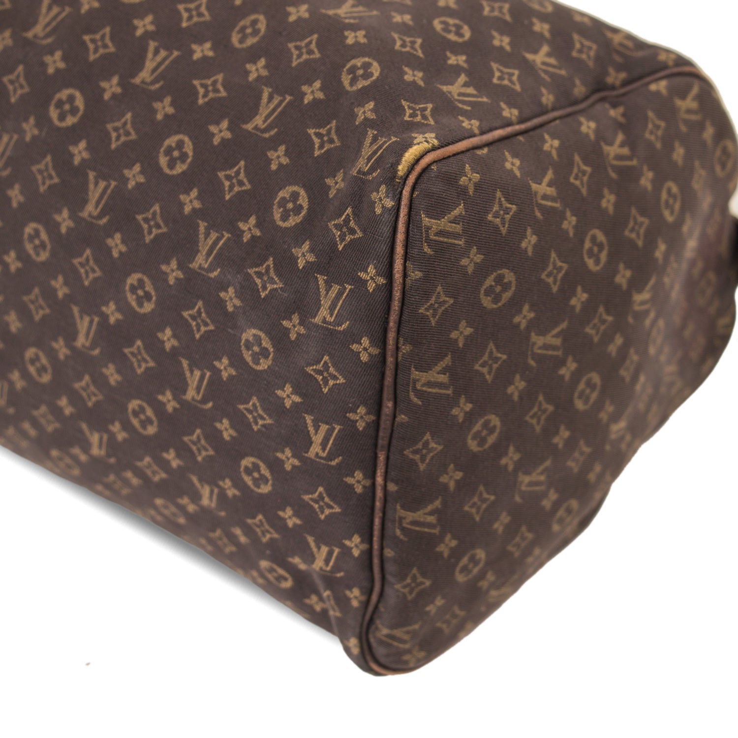 Details: Dark Brown Mini Monogram Fabric / Brass Hardware / Dual Leather Rolled Handles / Brown Leather Trim / Fabric Interior Lining / Flat Pocket at Inside / Zipper Closure at Top