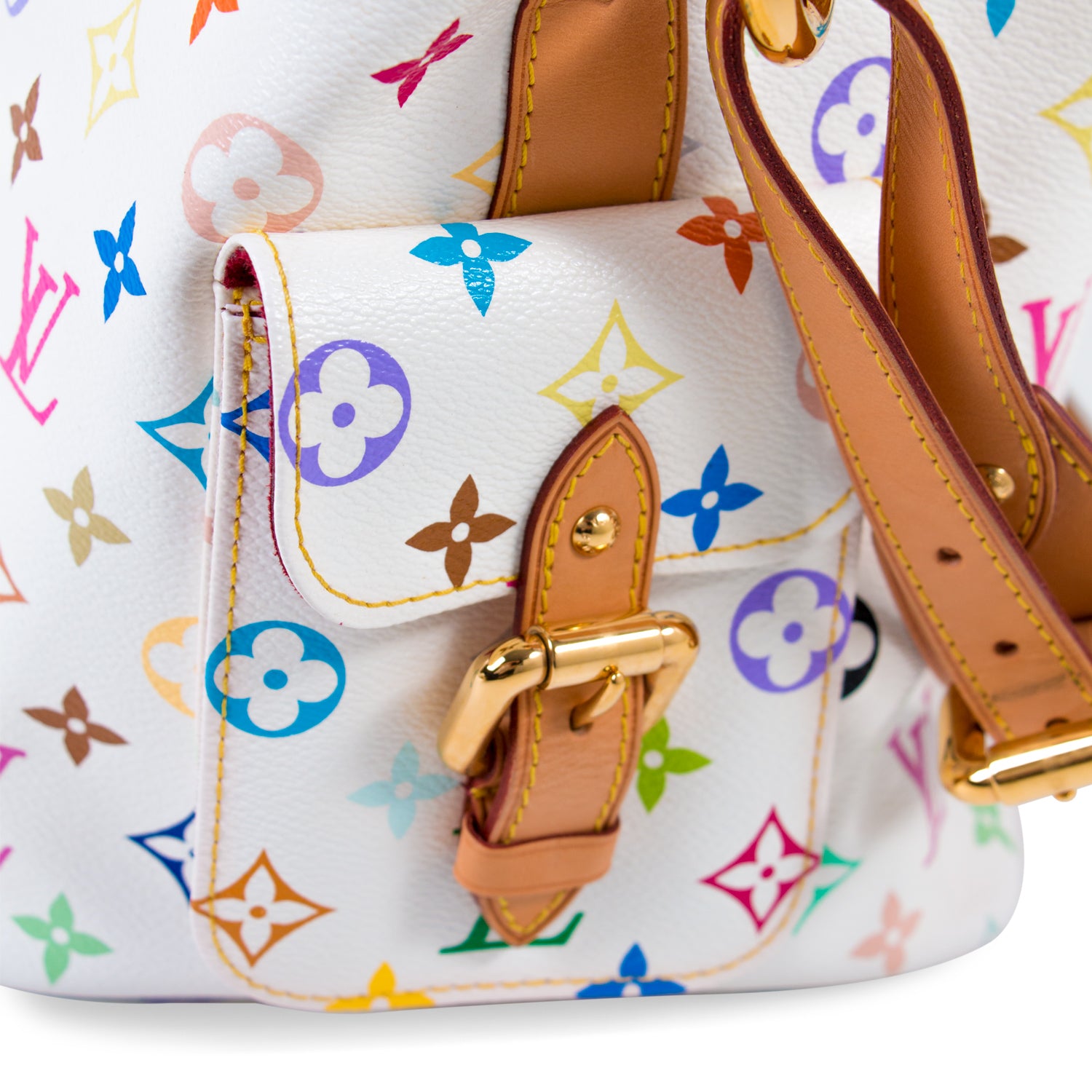 Details: White and Multicolor Monogram Coated Canvas / Tan Vachetta Leather Trim / Brass Hardware / Adjustable Shoulder Strap / Dual Pockets at Exterior / Burgundy Alcantara Lining / Slit Pocket at Inside / Drawstring Closure at top